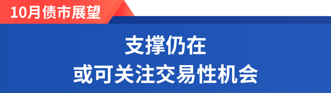 10月债市展望:利率债方面,经济弱修复与流动性宽松对债市仍有支撑,外部不确定性可能降低风险偏好,建议把握交易性机会;信用债方面,信用利差压缩动力有限,建议以中短久期票息策略为主。