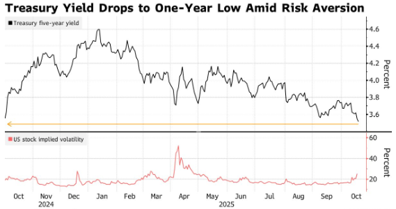 随着对两家美国地区性银行披露的问题贷款可能预示着危机蔓延的担忧加剧,资金纷纷涌向美国国债,这是席卷全球市场的避险热潮的一部分。财政赤字问题与贸易紧张局势等也削弱了风险情绪。除了美债, 10 年期澳大利亚国债收益率降至 4.09%,为 4 月初以来的最低水平,而同期日本国债收益率也有所下降。